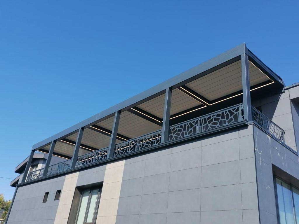 Tamamen alüminyum malzemelerden oluşan yeni nesil pergole sistemidir. Kayarak hareket edebilen panelleri sayesinde ev ve iş yerlerinize farklı renk seçenekleri ile yenilikçi ve modern bir hava katmak adına tasarladığımız Sanremo Roof Alüminyum Panel Sistemi’nin en büyük avantajı katlanarak arkada toplanması ve sistem üzerindeki materyal, yaprak vs cisimlerin mekana düşmesini engellemesidir.