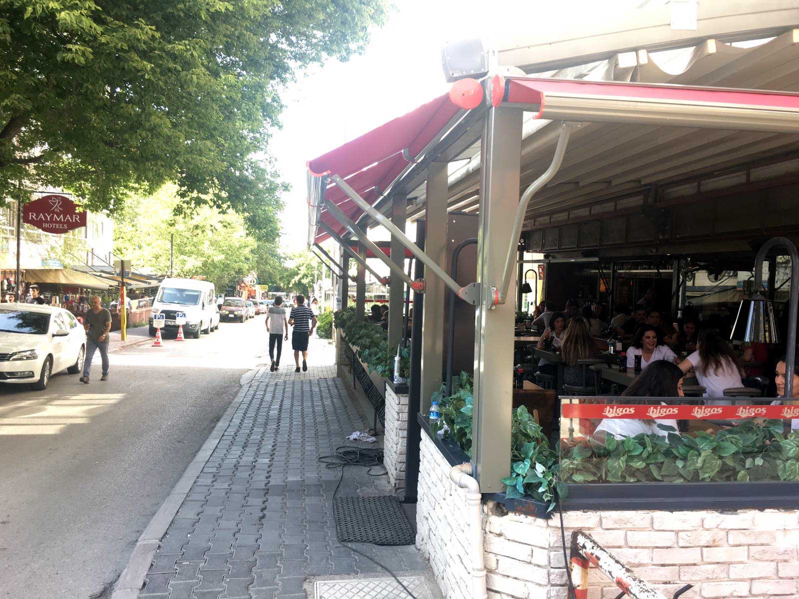 Dik yapısı ve 90 derece otomatik/manuel açılabilen SanremoWind sistemi mekanınıza kaliteli ve dekoratif bir görünüm sunar. Güneş ışığını ve ısısını cama temas etmeden tutarak iç mekânınızın tatlı bir serinlikte kalmasını ve aynı zamanda gölge olmasını sağlar. Yapı itibari ile SanremoWind’i, raylı tente sistemlerimiz ile rahatlıkla kullanabilirsiniz.